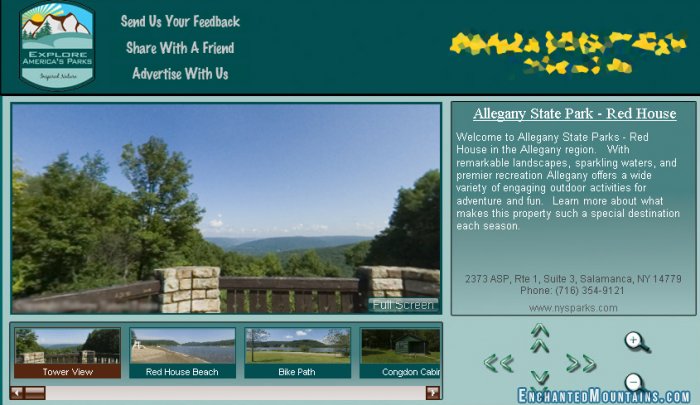 Home » Blog » 2010 » 10 Virtual Park Tours of Allegany State Park by Jeremy K on Oct152010 You can now tour certain locations in Allegany State Park ONLINE!!! On October 15, 2010, the New York State Office of Parks, Recreation and Historic Preservation announced that they now have "360-degreee views of scenic vistas, popular attractions, gathering spots and select interiors of nearly 50 parks and historic sites on its web site, www.NYSParks.com". Check out the following Allegany State Park Virtual Tours: Virtual Tour of Quaker Area of Allegany State ParkVirtual Tour of Red House Area at Allegany State Park What do you think of the tours? About Jeremy K I love running around in my bare feet and playing outside. Filed in Summer Scenic Drives & Views Tours & Excursions virtual tour Login to post comments Email this page Photos tagged as #EnchantedMountains or #EMFun. @emountains