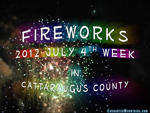 Home » Blog » 2012 » 06 2012 Fireworks for July 4th week in Cattaraugus County by Jeremy K on Jun252012 Cattaraugus County Fireworks schedule for the 2012 July 4th Week! Don't forget to bring lawnchairs and blankets! On June 30 Ellicottville's Music Festival will have the first fireworks of the Summer with the Buffalo Philharmonic Orchestra playing the 1812 Overture and Stars and Stripes Forever. On July 2 Fireworks will light up the sky at the Seneca Allegany Casino & Hotel fireworks display which starts about 9:45PM but be sure to get there at least an hour early to get your spot. On July 3 (updated!) Relax with nature at Allegany State Park and then watch as fireworks dance over Quaker Lake creating a spectacular view (and keeps the animals up). Chicken BBQ will begin at 4pm and the band Cruisin' will take the stage at 7pm. Fireworks will begin at 9:45pm. On July 4 Olean, NY: Fireworks will be booming at Bradner Stadium thanks to the Olean Firefighters. The 2012 Fireworks Celebration will be a fun-filled evening of great music, mouth-watering food, family entertainment and socializing culminating with a spectacular fireworks show at dusk. Please remember the fireworks are funded all through your donations. Little Valley, NY: Take the family out for an evening of noise and excitement at Freedom Daze Demolition Derby, a demo derby & fireworks show at the Little Valley Speedway (Cattaraugus County Fairgrounds) On July 5-7 Yes, that is correct, on Thursday, Friday and Saturday nights, the Ellicottville Championship Rodeo will have fireworks displays after an afternoon of broncos and bulls bucking cowboys and cowgirls around. Do you know of more firework displays? Contact us or leave a comment below about other firework displays going on in Cattaraugus County. If you take some great pictures share them with us by email, Flickr, Facebook, Twitter or in the comments below. About Jeremy K I love running around in my bare feet and playing outside. Filed in Summer Adventure fireworks Login to post comments Email this page Photos tagged as #EnchantedMountains or #EMFun. @emountains