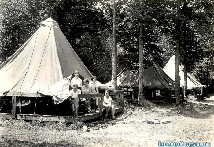 Home » Gallery » Summer at Allegany State Park Girls looking out of a platform tent in Allegany State Park An old photo of some girls looking out of a platform tent here in Allegany State Park. Photo from Allegany State Park's Facebook page. in Adventure Rustic Camping Nature Lovers Login to post comments Email this page Photos tagged as #EnchantedMountains or #EMFun. @emountains