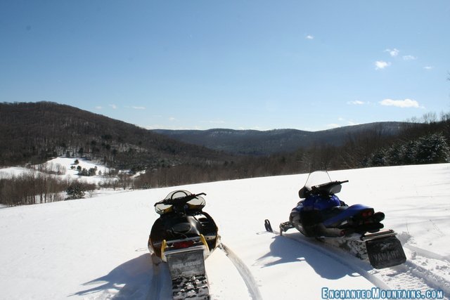 Home » Gallery » Snowmobiling at Allegany State Park A Great View of the hillsides Two snowmobiles in the foreground with a Great View of the hillsides in Snowmobiling Login to post comments Email this page Photos tagged as #EnchantedMountains or #EMFun. @emountains
