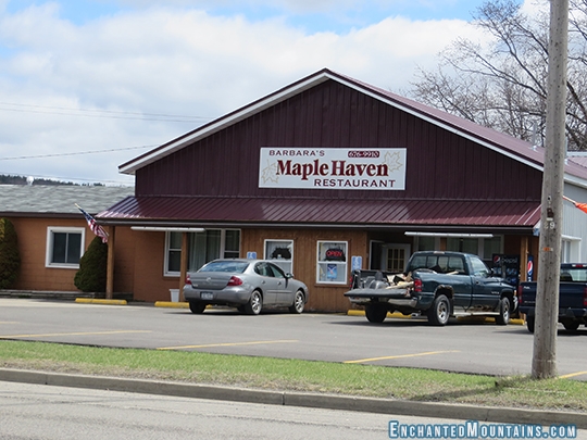Home » Places Barbara's Maple Haven Good home cooking and fresh baked goods daily! Great home cooked breakfast; pancakes with REAL Maple Syrup. Friday Fish Fry. Snowmobilers welcome! Plenty of parking. Hours: Open everyday from 7am - 8pm Maple Haven Farms Restaurant 103 North Main Street PO Box 55 Franklinville, NY 14737 United States Phone: 716-676-9910 42° 20' 44.9448" N, 78° 27' 16.2144" W Takeout Food: Yes Outdoor Dining: Yes General Information Wheelchair Accessible: Yes Parking: Yes RV Parking: Yes Bus Parking: Yes Pets Allowed: No Accepts Credit Cards: Yes Internet Access: Unknown Conference / Meeting / Banquet: Unknown Playground: Unknown Indoor Pool: Unknown Outdoor Pool: Unknown Swimming: Boat Launch or Dock: Fishing Access: Equestrian Trail Access: Unknown Bicycle Trail Access: Unknown Hiking Trail Access: Unknown Mountain Biking Trail Access: Unknown Snowmobile Trail Access: Unknown Please note Please note that this information may change and may be incorrect Barbara's Maple Haven is categorized in American Breakfast Burger Diner Food & Drink Sub/Sandwiches Eat baked goods maple syrup Franklinville Email this page Photos tagged as #EnchantedMountains or #EMFun. @emountains