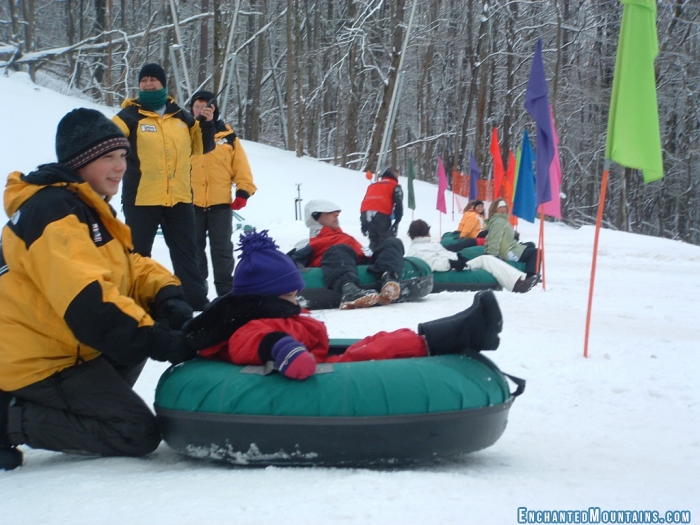 Home » Places Holiday Valley Tubing Company Grab your friends and family and head over to the Holiday Valley Tubing Company. Tubing is fun for all ages. All you have to do is sit down, hang on and experience the exhilaration of pure winter fun! New in 2018! Brand new conveyor lift. Step on and it will take you to the top! Holding more capacity, it will get you to the top quicker, which means more rides for you. Plus there's new snow guns for when Mother Nature needs a little help! The Holiday Valley Tubing Company is located on Rt. 242, just 4 miles from Holiday Valley on the north side of Ellicottville. A FREE shuttle service is available during operating hours. Pickup is at the Resort Services Center turn around. Minimum age/height requirement is 7 years old and 42" tall. A special Little Tubers area is available, weather permitting, for younger children. Tubing is an awesome activity for groups because it is fun for everyone! Contact Group Sales to find out about booking the park for an event. Call for ideas on group outings, team building or birthday parties, 716-699-2345, ext. 4406. During the winter season, the park is open Thursdays and Fridays from 4:30pm to 9pm, Saturdays 11am to 9pm, and Sundays from 11am to 6pm. Additional hours are available Christmas week, President's week and March Break, weather permitting. Tubing can be rather chilly and it makes it a much more enjoyable experience if you dress for the weather. You can bundle yourself up like the Michelin Man, just like your mom did for you when you were a kid, or take advantage of the new technology in outdoor wear. The goal is to stay warm and dry, so cotton (gets cold and wet) is not recommended. Dress in layers with a wicking layer close to your skin, a polarfleece sweater and waterproof/windproof jacket on top. Wear flannel pajamas or long underwear under insulated water resistant pants on the bottom. On your feet, wear wool socks and comfortable insulated boots (not ski boots) that can be securely fastened. Wear a close fitting hat that won’t fall off as you’re sliding. Goggles and a scarf or neck warmer aren’t a bad idea if it is snowing or especially cold. Mittens are warmer than gloves, and make sure they are insulated and waterproof. Hats, gloves, neckwarmers and handwarmers are available at the Tubing Company, along with some fun logo’d sweatshirts and t-shirts. Holiday Valley Tubing Company 5673 Bryant Hill Corner of Bryant Hill and Rt. 242 Ellicottville, NY 14731 United States Phone: 716-699-2345 42° 18' 22.8204" N, 78° 37' 31.7712" W Website: HolidayValley.com General Information Wheelchair Accessible: Yes Parking: Yes RV Parking: Yes Bus Parking: Unknown Pets Allowed: Unknown Accepts Credit Cards: Yes Internet Access: Unknown Conference / Meeting / Banquet: Unknown Playground: Unknown Indoor Pool: Unknown Outdoor Pool: Unknown Swimming: Boat Launch or Dock: Fishing Access: Equestrian Trail Access: Unknown Bicycle Trail Access: Unknown Hiking Trail Access: Unknown Mountain Biking Trail Access: Unknown Snowmobile Trail Access: Unknown Please note Please note that this information may change and may be incorrect Holiday Valley Tubing Company is categorized in Winter Family Entertainment Snow Tubing hot cocoa Adventure Seekers Ellicottville Nature Lovers Party Goers & Socialites Email this page Photos tagged as #EnchantedMountains or #EMFun. @emountains